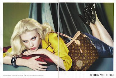 For fashionholics, one of the funnest thing about flipping through Sept. issues of magazines are the new FW07 ads. As we all know, magazine ads usually focus on marketing products from the seasonal collection, especially the 'it' bags. All the products come from one collection and have a common theme. But interestingly this season, Prada and Louis Vuitton, both huge bag sellers, have dedicated one or two campaign images to their classic bags. Maybe because the creative directors behind the ads did a really good job, or maybe it's because the bags are just so classic -not matter what, these classic bags fit in surprisingly well with the seasonal clothes. I mean, look at this Prada ad, even with the artistic and somewhat weird clothes Prada has this season, the bags still seem to belong there. The puffed up messenger bags totally fit in with Prada's intelligent, artsy image. As for the Louis Vuitton ad, the classic monogrammed bag fits in really well with the whole posh, well-dressed, high-maintanence woman image. (For once, I'll refrain from ranting about how much I dislike celebs posing in high fashion ads. Sigh...) Even after looking at this uber-glam ad, I still don't feel the urge to buy this monogrammed bag, although to be fair, I'm not a fan of obviously-monogrammed bags. Oops, now I'm ranting about monogrammed bags.Anyhow, classic bags seem to be getting a push from large brands this season. Are the execs hoping more people would fish out money for their classic bags, or is this a nod to the late 80's/ early 90's trend? No matter what, at least you know if you buy these classic bags, they won't be particularly 'out' next season!